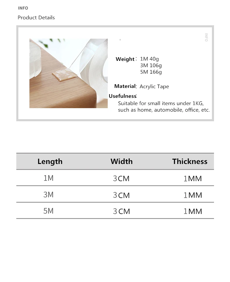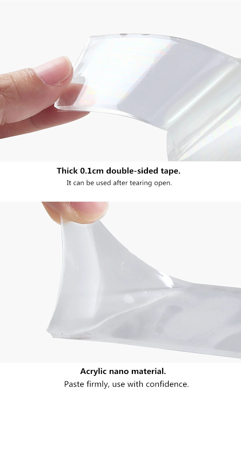 Двухсторонняя клейкая прозрачная нано-прочная клейкая лента 1 м/5 м, съемная моющаяся нано-волшебная лента, двусторонняя клейкая лента gekkotape
