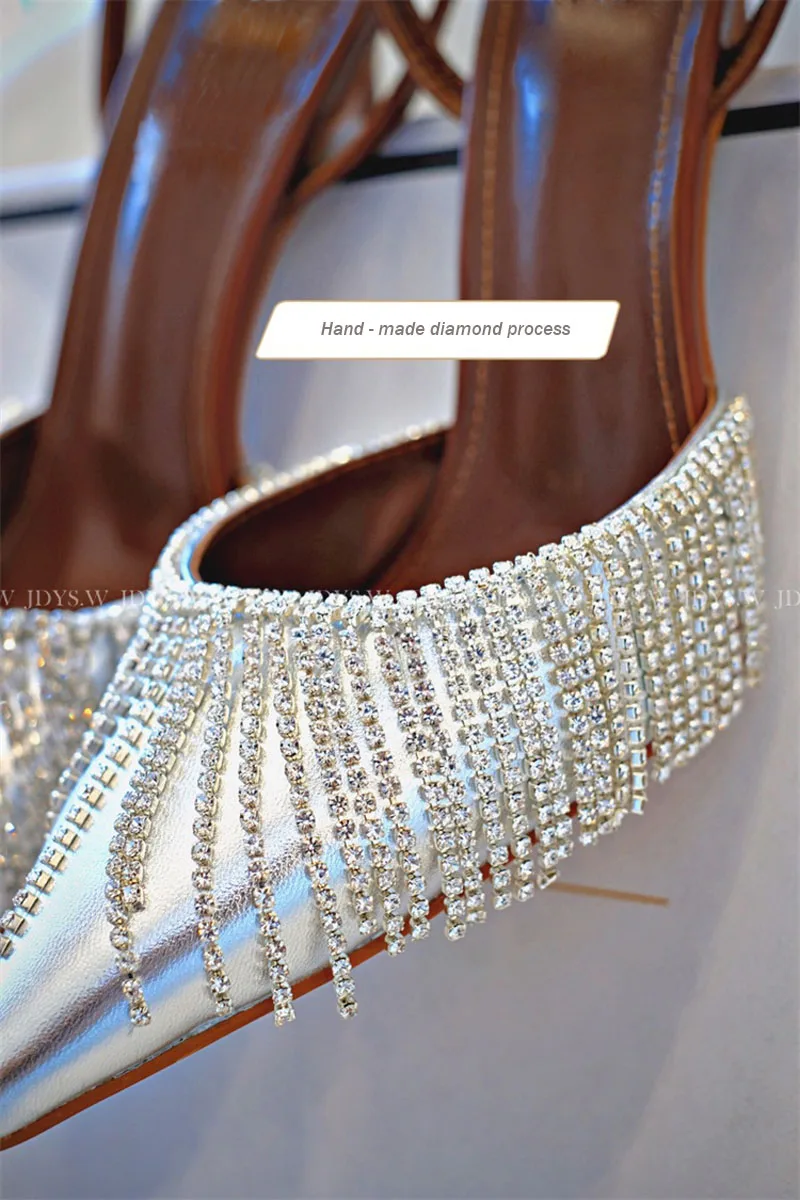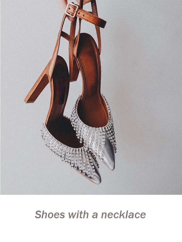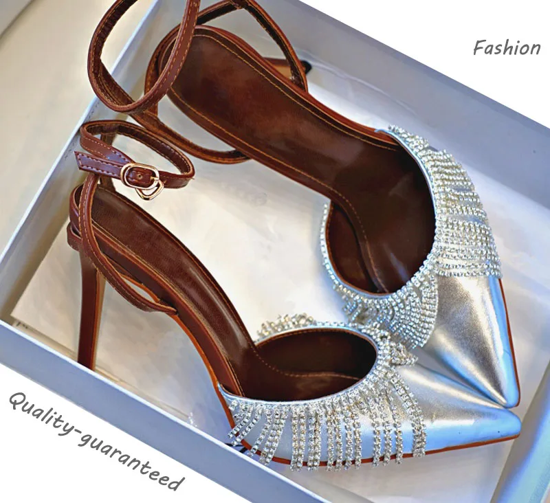 Модная и элегантная обувь с острым носком. Алмазы крепятся на цепочках, гарантированное качество.