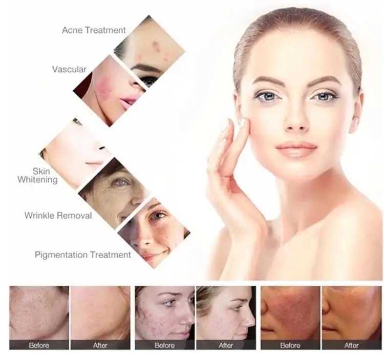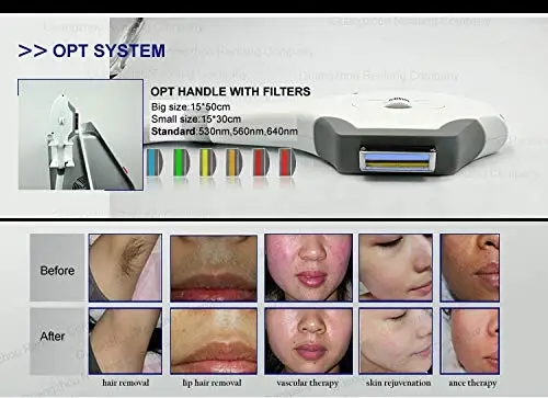 OPT (оптимальная импульсная технология) IPL технология лечения теория заключается в том, что: Интенсивный Импульсный светильник производит светильник, тепловой эффект и фото химическое воздействие на кожу, глубокий коллаген и эластичное волокно кожи восстанавливают и восстанавливают эластичность кожи, одновременно усиливают функции сосудистой ткани, устраняют морщины кожи лица и уменьшают усадку пор; Дополнительный, интенсивный импульсный светильник также может проникать в кожу, предпочтительно поглощается пигментной группой и селективностью сосудистой ткани; Без уничтожения нормальной кожи, свертывания крови, группы пигментов и пигментных клеток разрушены, разложение, таким образом, чтобы достичь терапевтический эффект от пигментации. Принцип обработки: E-светильник (машинка для лазерной эпиляции IPL) применяется три основные технологии IPL РФ и Эпидермис охлаждения. Он сочетает в себе преимущества IPL и RF, в одной руке (или вы можете настроить свои ручки, один ipl наконечник, один rf наконечник), кожа поглощает энергию IPL выборочно, И кожа также поглощает энергию RF, с другой стороны, технология охлаждения с помощью сенсорного экрана RF может устранить дискомфорт и осложнения при высоком нагреве IPL. Таким образом, эффект и безопасность E-светильник делают прорыв. Технология TSL e светильник очень зрелый, поэтому наши машины e светильник имеют надежное качество и надежность. OPT-SHR IPL 1. Постоянное удаление волос. 2. Лечение пигментации (удаление пятен, удаление оспы, удаление веснушек). 3. Омоложение кожи (подтягивает кожу, удаляет мелкие морщинки, отбеливает кожу). 4. Лечение акне. 5. Сосудистая терапия. Описание продукта: Принцип технологии SHR + ipl + elight Передовые технологии: Биполярный RF (радиочастота) + IPL (интенсивный импульсный светильник), можно использовать вместе или отдельно. Можно ожидать идеальных результатов лечения. Радиочастотная энергия может проникать в слой дермы и непосредственно доставлять волосяной фолликул на кожу ниже 8 мм. Интеграция с энергией IPL, хороший результат лечения покажет вам в короткое время. Кроме того, Эта тепловая энергия стимулирует выработку нового коллагена и восстанавливает коллагеновую ткань, последующее нагревание дополнительно подтягивает кожу и уменьшает морщины. Самое главное, что IPL с контактной системой охлаждения внутри эффективен на эпидермисе, что значительно уменьшает боль во время лечения. Стабильная производительность делает безопасность во всем процессе