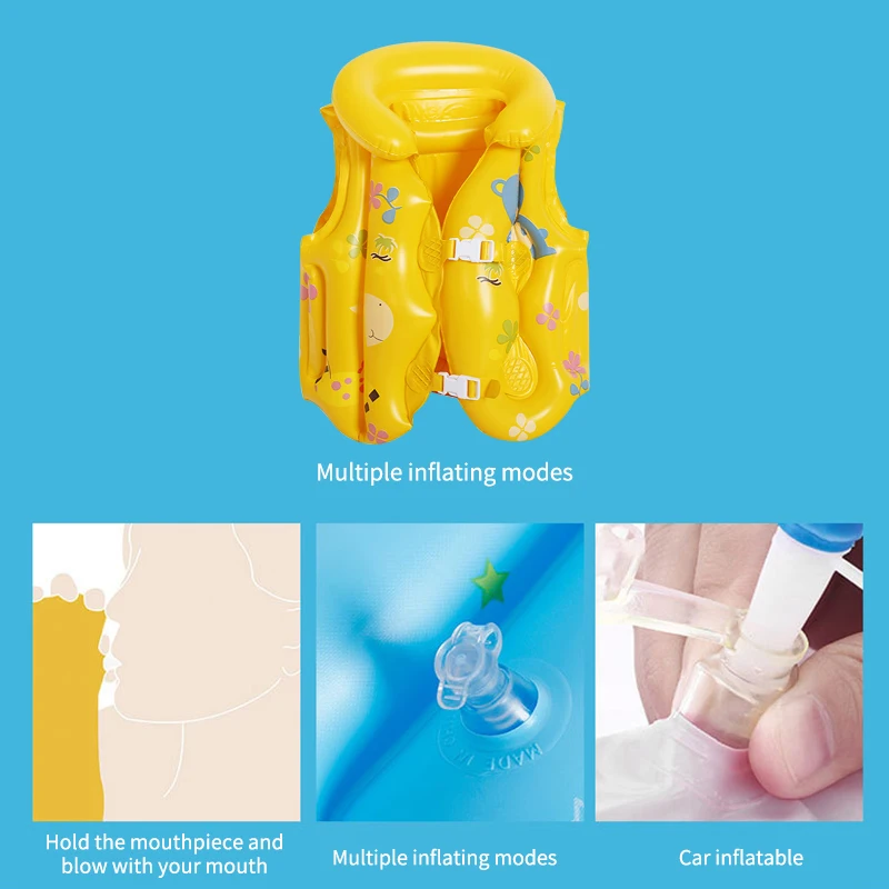 Плавучий жилет с тремя подушками безопасности мягкий и гладкий, удобный для детей. Кроме того, дизайн воздушного воротника удобен для отдыха детей.