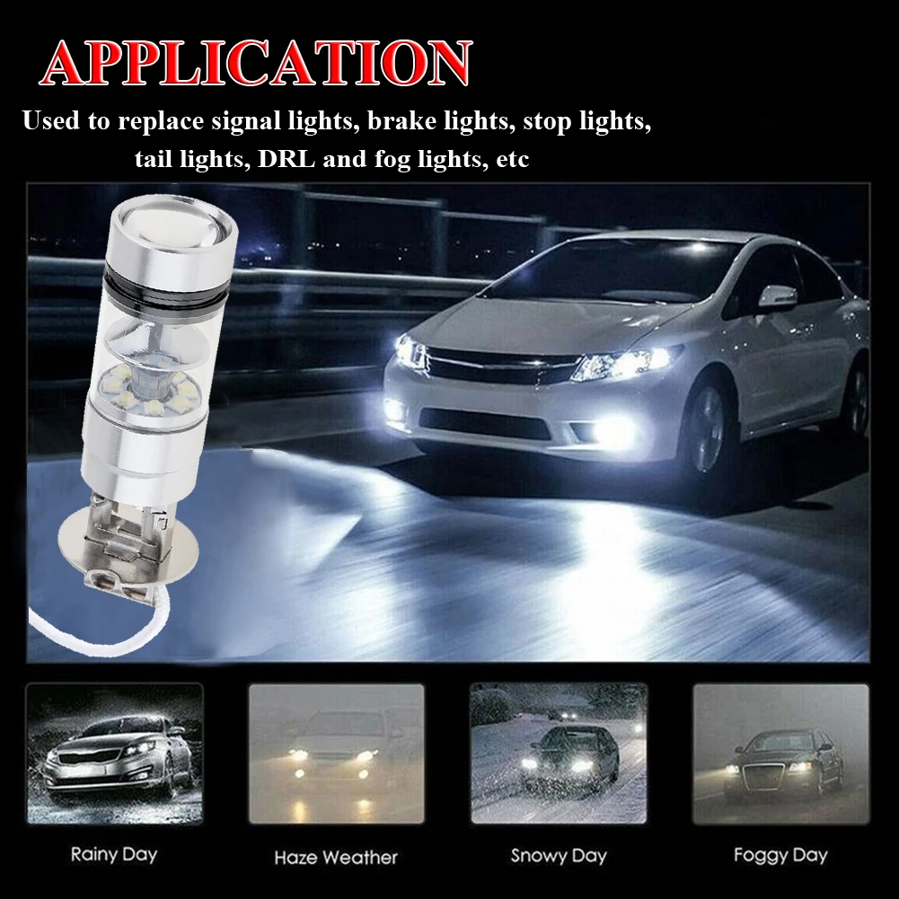 2 шт. H3 светодиодный туман светильник вождение автомобиля лампы 100 Вт, супер яркие чипы, 12/24V белого цвета