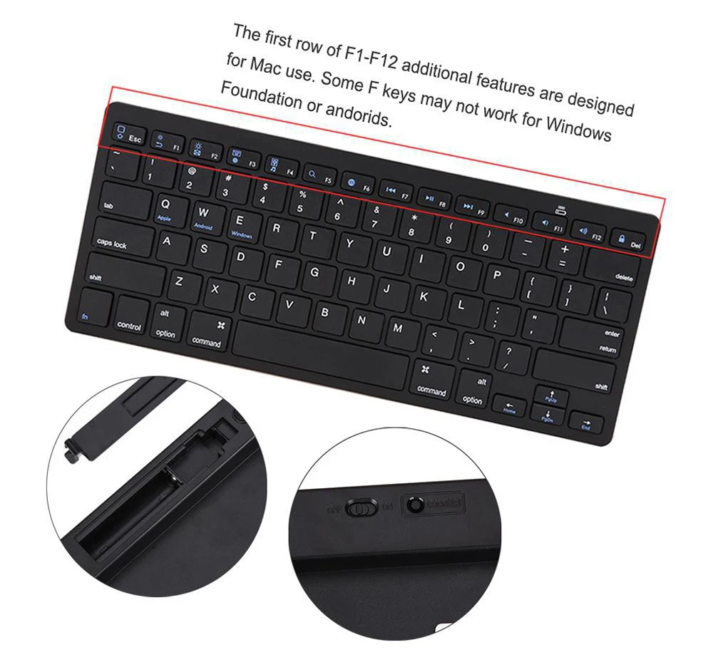 Описание: Тип товара: игровая клавиатура Используйте беспроводную технологию Bluetooth 3,0, позвольте вам избавиться от оков линии Две щелочные батареи AAA могут использоваться непрерывно в течение трех месяцев (аккумулятор в комплект не входит) С выключателем питания, мощность может быть выключена, когда не используется, экономя электрическую энергию Ультратонкий дизайн, основная толщина всего 6,7 мм Структура клавиш: колпачок для ключей (включая угол X-type ножниц, угол подвески двойной руки) + верхняя крышка; Колпачок для ключей изготовлен из абс + поликарбоната лазерного материала толщиной всего 2,5 мм Мягкая рука, тихий звук ключа, срок службы более 2-3 раз от общей клавиатуры 78 клавишный дизайн, с 6 мультимедийными клавишами, и для iPad iPhone, выделенный основной ключ управления, поиск, функция регулировки яркости, просмотр фотографий, виртуальная клавиатура и экранный переключатель Тонкий дизайн с плавающей кнопкой, естественно, показывает чувство моды Красивый внешний вид, модный, очень нежный, цвет черный, белый два варианта Размер: 284,34 (Д) x 120,0 (Ш) x 18,60 (В) мм Характеристика: Совместимость с операционной системой windows, такой как Windows 2000, NT, XP, vista и т. д., без драйвера, если функция Bluetooth может быть установлена непосредственно. Совместимость с операционной системой Mac OS, iPad, phone OS 4,0 не требует установки драйвера, может использоваться напрямую. Совместимость с операционной системой windows mobile, не требует установки драйвера и может использоваться напрямую. Упаковочный лист: 1 x продукт 1 х Руководство 1 х упаковка коробки Примечания: Отклонение цвета может отличаться из-за различных настроек монитора, пожалуйста, поймите.