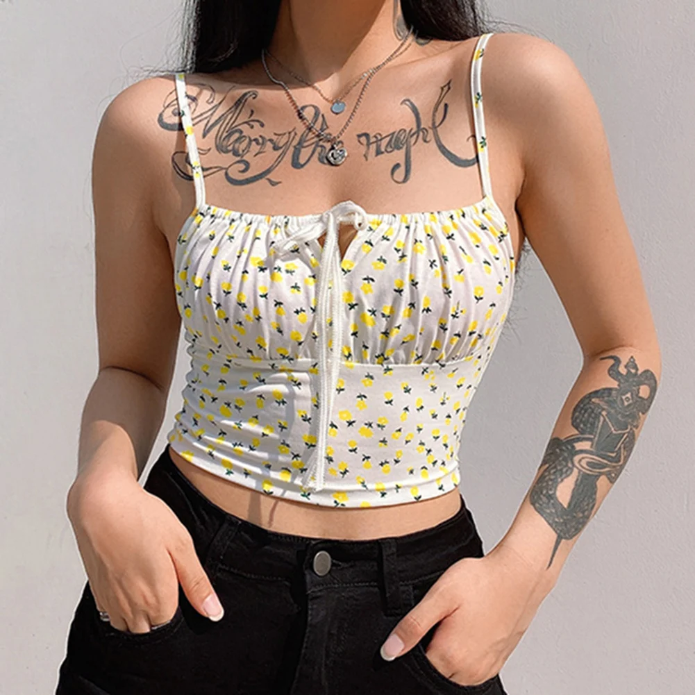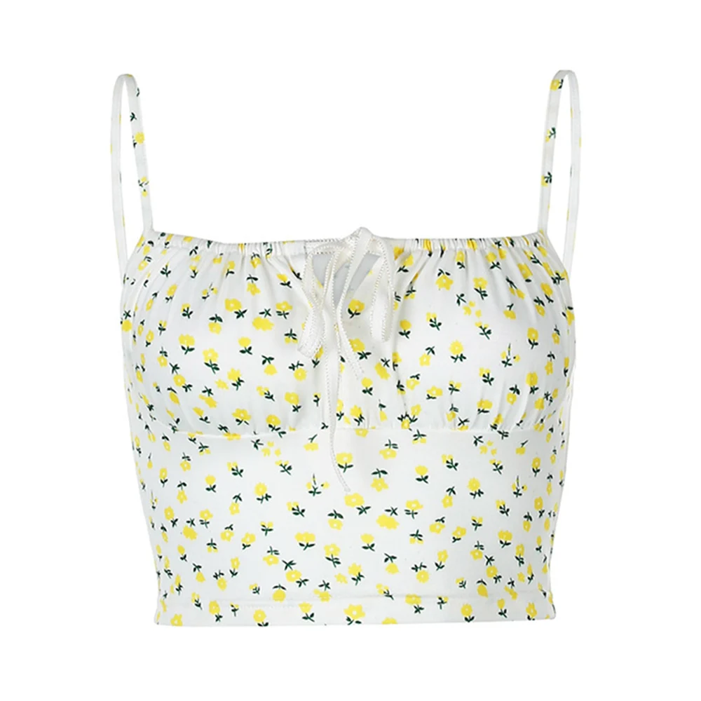 -Платье-майка из полиэстера на бретелях с u-образным вырезом и принтом фиалки.