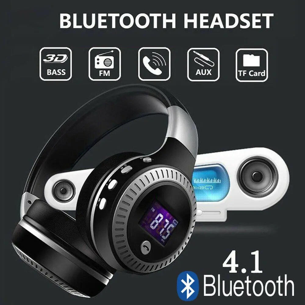 ЖК-дисплей HiFi Басс наушники Складная Беспроводная стерео Bluetooth гарнитура для мобильного телефона портативных ПК с поддержкой микрофона fm-радио Micro-SD слот для карт памяти.