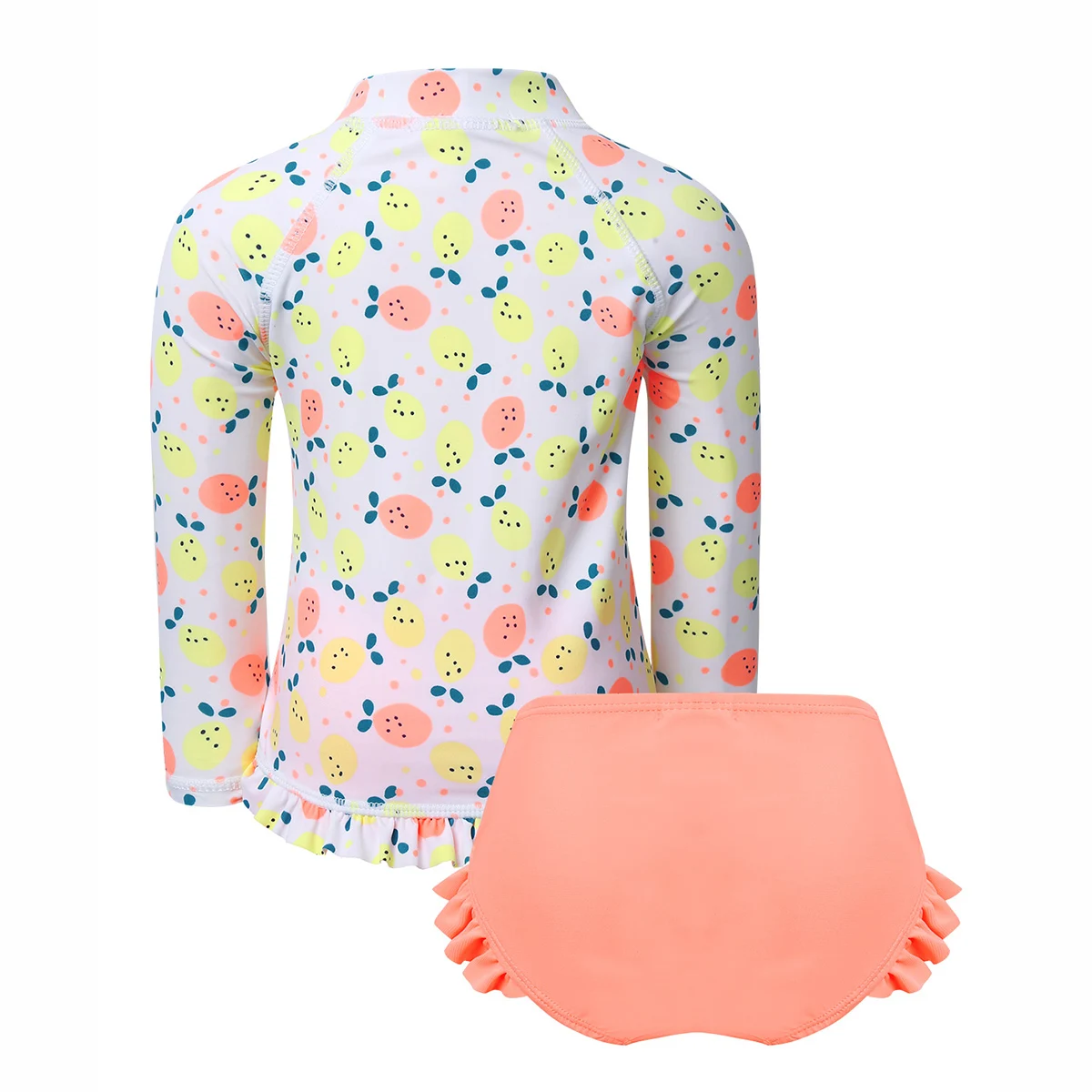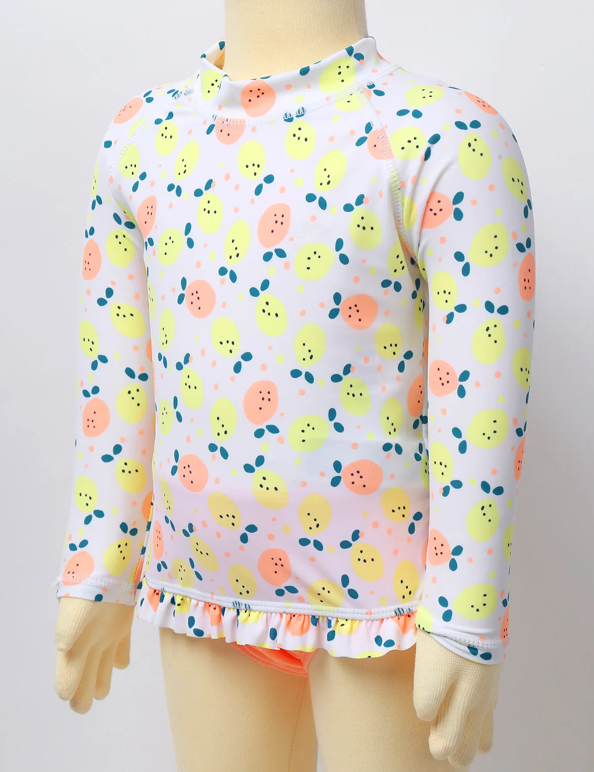 Длинные рукава, вырез лодочкой, купальные топы с милым фруктовым рисунком. Двойные швы. С защитой от солнца UPF 50 +.