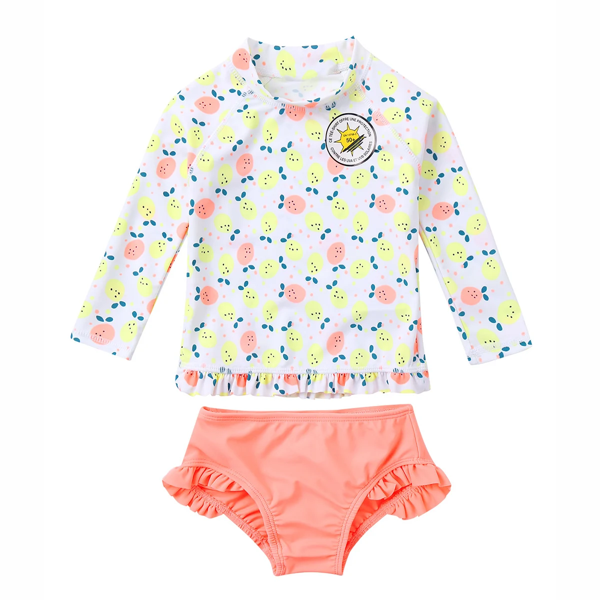 Купальник-танкини для девочек; Одежда для купания с длинными рукавами; Милый купальник с принтом фруктов; Купальный костюм; Комплект из топа и купальных брюк; Детская пляжная одежда