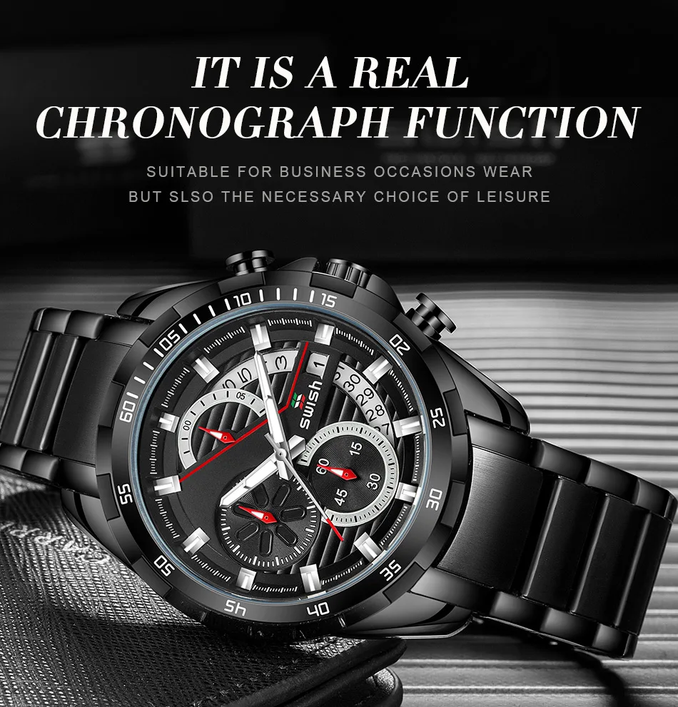 SWISH 2020 военные часы для мужчин люксовый бренд розовое золото хронограф часы Мода нержавеющая сталь кварцевые наручные часы мужские Saat