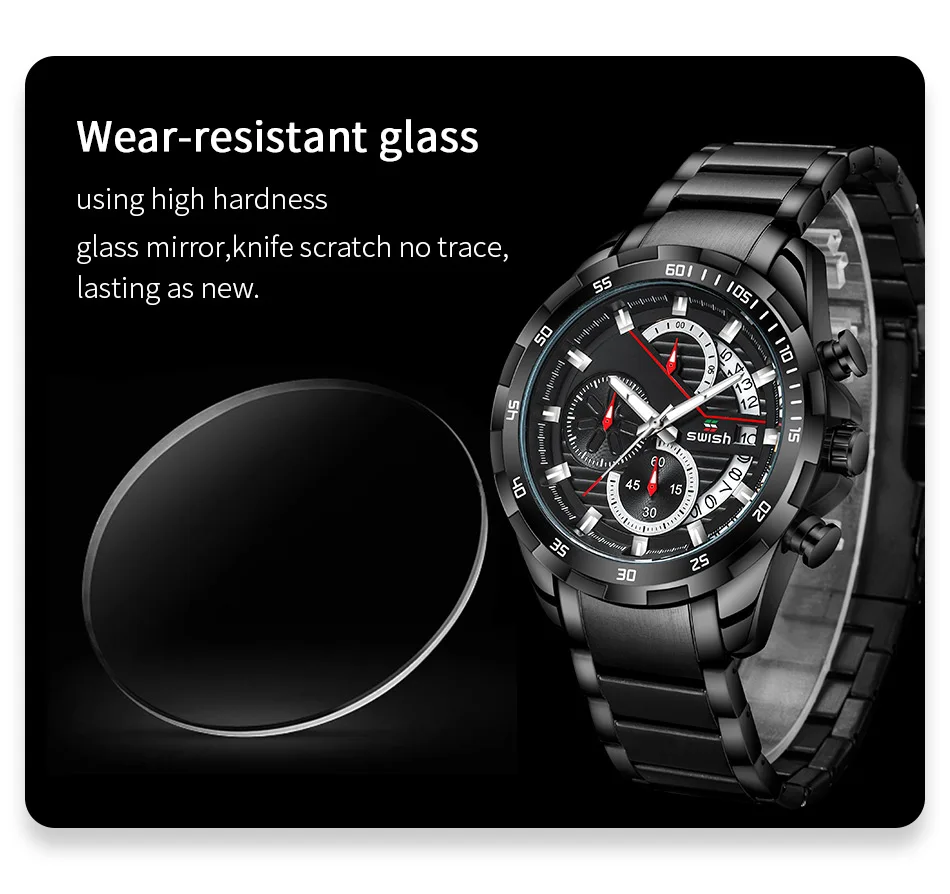 Бренд: SWISH Стиль: спортивный, Повседневный, деловой, модный Механизм: оригинальный кварцевый механизм Основная особенность * 100% новые и высококачественные * 3 атм/30 м Водонепроницаемость (поддержка холодного душа и плавания, не используйте часы под водой, не поддерживайте горячую воду); *** Чехол из сплава; **** Качественная нержавеющая сталь 1 * набор = 1 * SWISH Watch