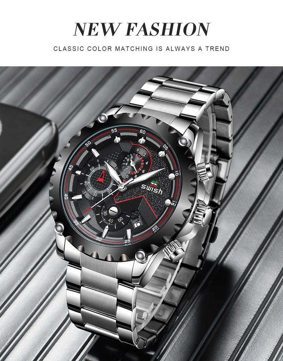 SWISH модные серебряные часы для мужчин повседневные водонепроницаемые военные часы Хронограф Спортивные кварцевые часы Relojes Hombre 2020 современные