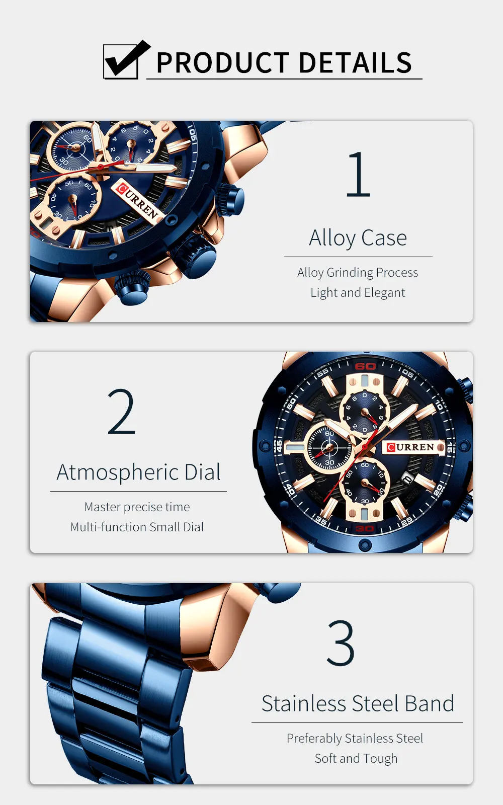 Описание продукта: 100% Новый оригинал и высокое качество Дата и время Дисплей 1/10) Секундомер, счет секунд Хронограф секундная стрелка Минутной стрелки хронографа 24 часа в сутки Дисплей Нержавеющая сталь ремень 30 м водонагреватель Кожаный ремешок Технические характеристики Материал корпуса: сплав Чехол Диаметр: тонкий УФ-фильтр 49 мм Чехол Толщина: 15 мм Материал ремешка: ремешок из нержавеющей стали Длина ремешка (включая чехол): 240 мм Ширина ремешка: 24 мм Что входит в комплект 100% Curren брендовая Оригинальная Новинка 1 х Curren Модные повседневные Оригинальные кварцевые часы для мужчин