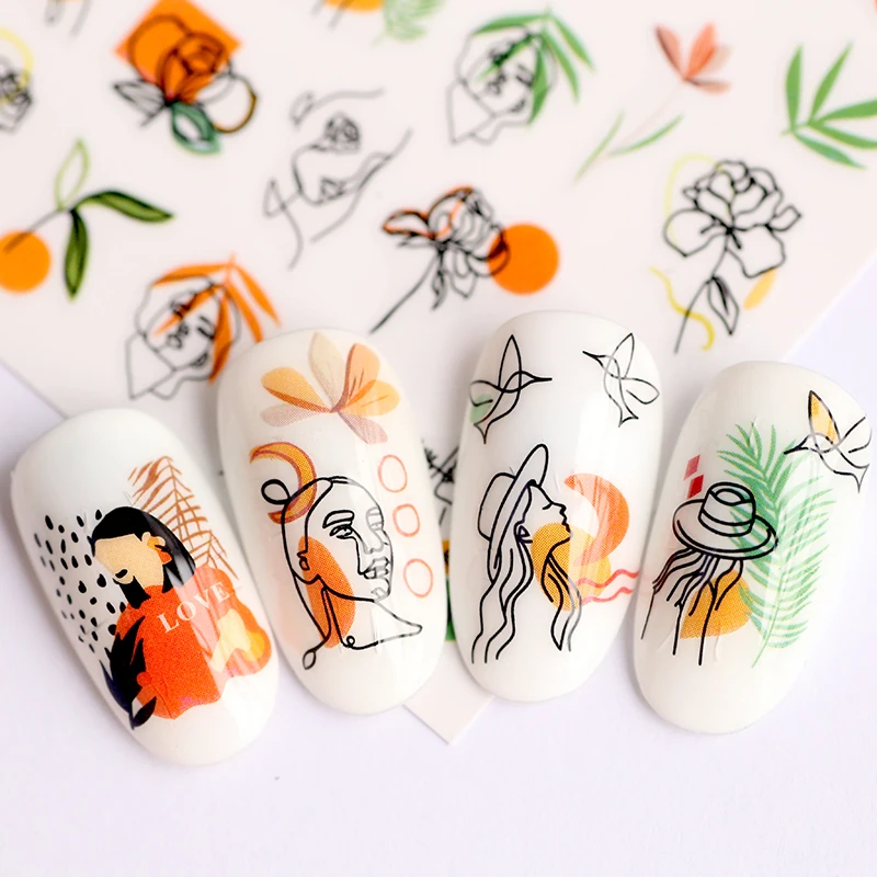 Количество: 1 шт Размер листа: прибл. 12x7.5cm Узор: женское лицо эскиз абстрактное изображение сексуальная девушка дизайн ногтей самоклеющиеся наклейки дизайн Цвет: как на картинке Дизайн: 3D клейкая наклейка
