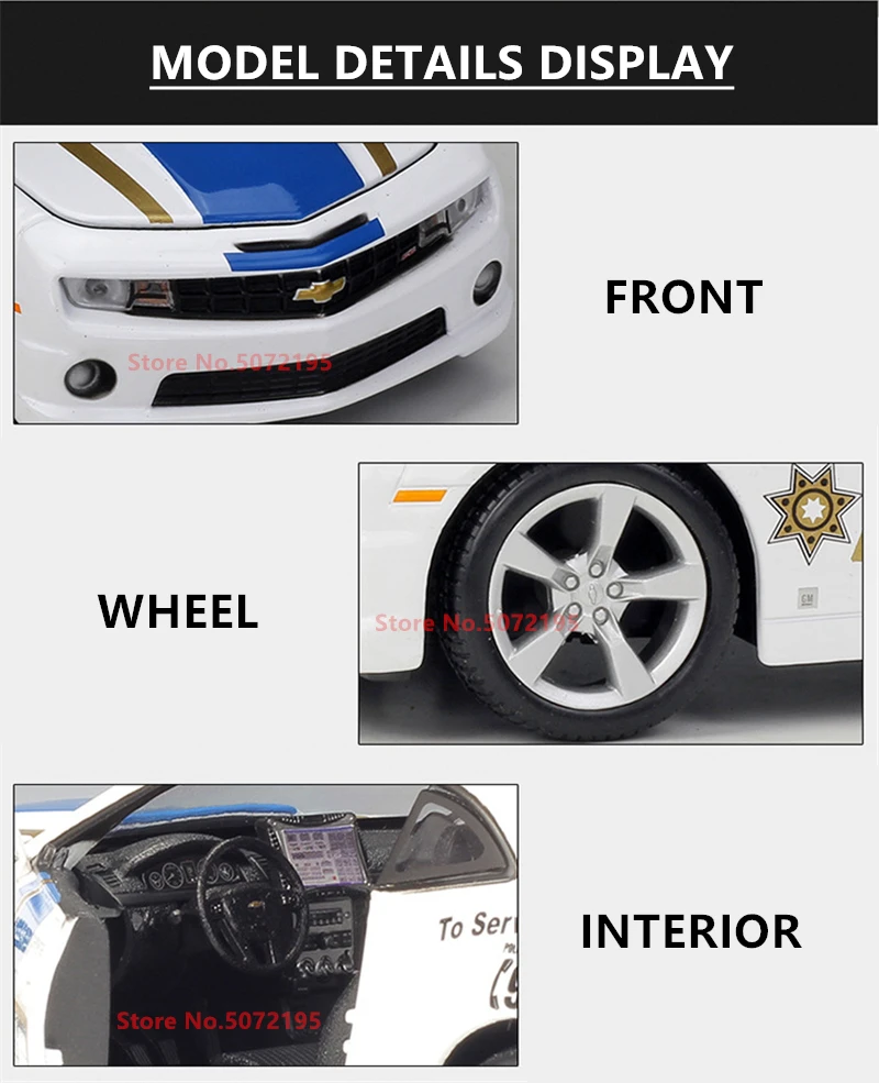 Введение продукта Название: Chevrolet Hornet 2010 Camaro SSRS Бренд: Maisto Размер: около 20,3*8*5,9 см Масштаб: 1/24 Материал: основной корпус-цинковый сплав, другие-АБС и Резина Наши продукты гарантированно являются аутентичными. Оригинальная Заводская оригинальная коробка. Официальное разрешение Этот продукт является коллекционной игрушкой, за исключением электрической. Шины могут быть перемещены, и рулевое колесо двери может быть перемещено.