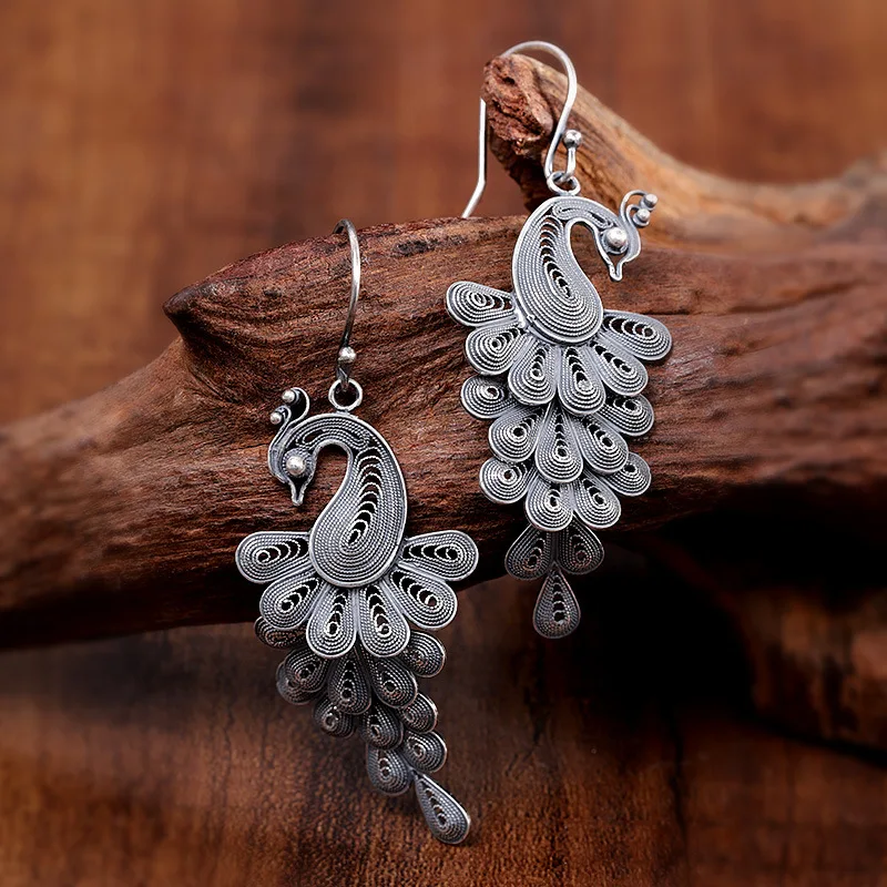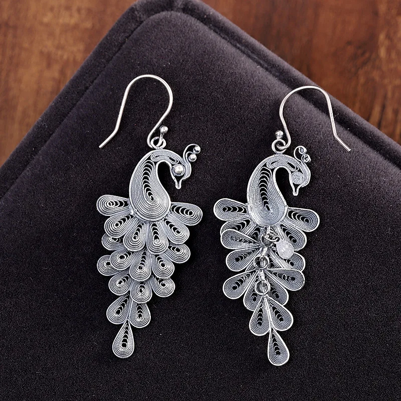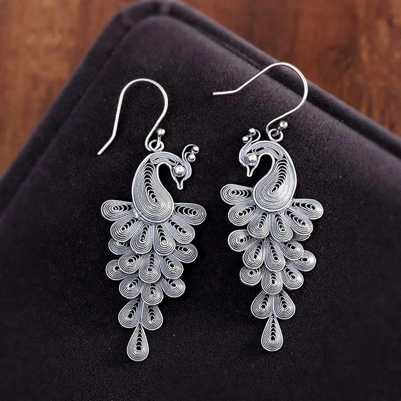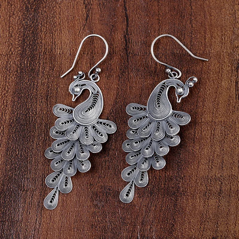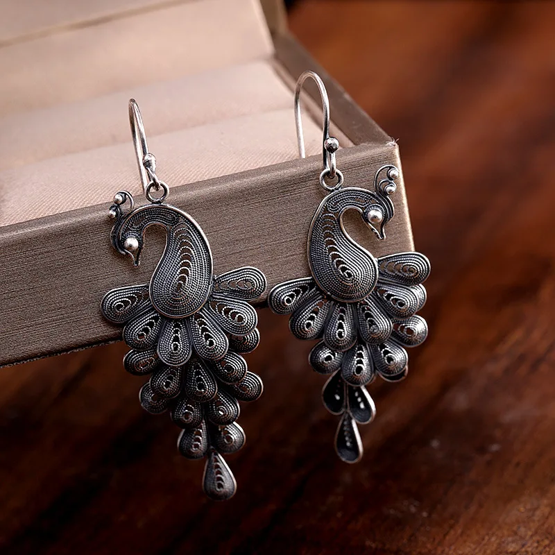 【Название 】 серьги в виде павлина [Материал] Серебро S925 пробы [Стиль] Мода/Ретро 【Вес 】 около 7,2 г 【Размер 】 длина капли уха: 6,1 см Ширина: 2,2 см