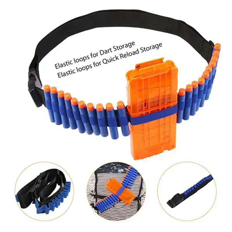 Ремешки и наручная лента регулируются в соответствии с большинством размеров, зажимы для быстрой перезагрузки работают со всеми элитными бластерами nerf n-strike и самыми оригинальными бластерами n-strike.