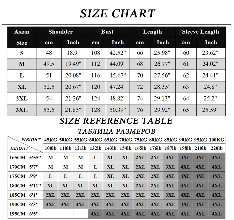 1. Эта Таблица размеров предназначена только для справки. Допускается погрешность в 1-3 см для измерения вручную.
