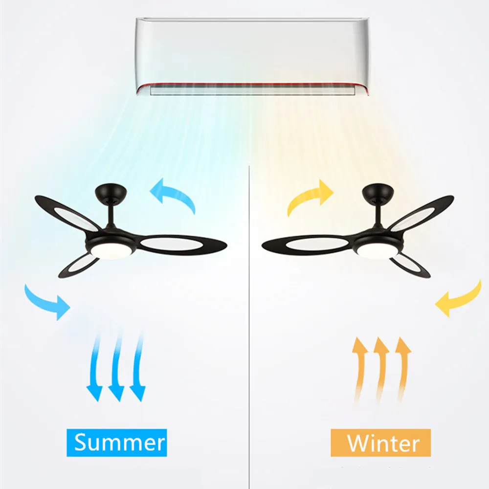 Современный потолочный вентилятор с воздушным охлаждением постоянного тока, с подсветкой, с пультом дистанционного управления, пластик, 44 дюйма, вентилятор, лампа для спальни, любители украшения, Реверсивный