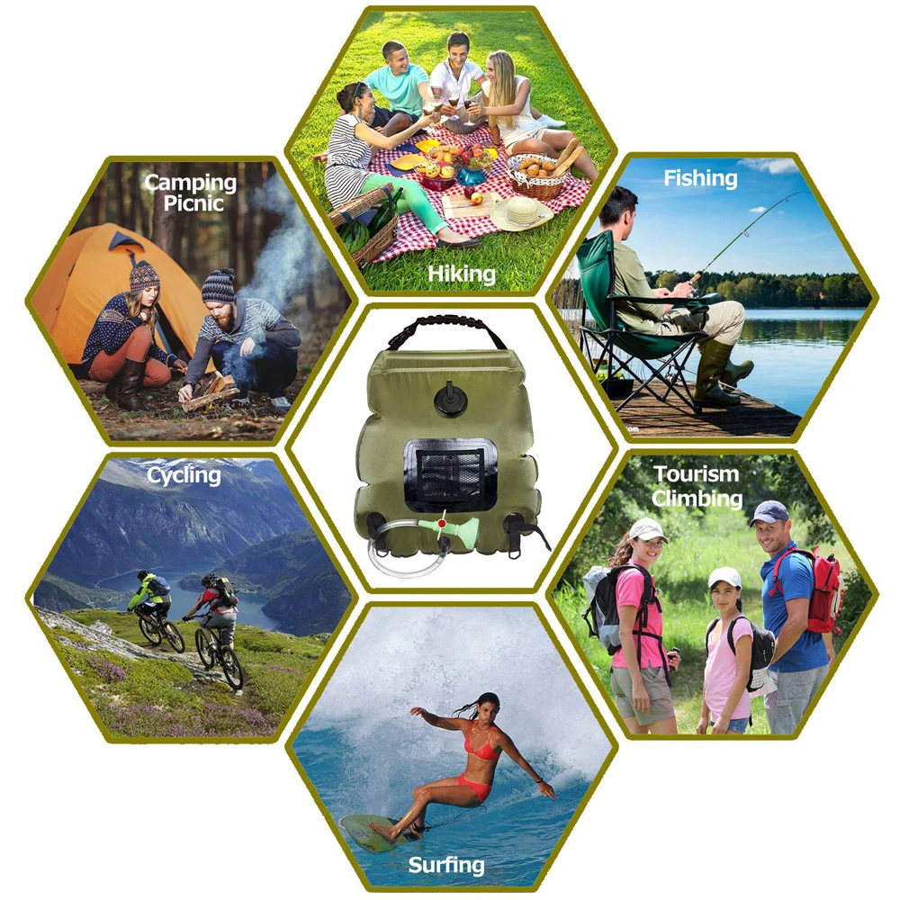 Душевая сумка на солнечной батарее отлично подходит для использования на улице. Это идеально устранит проблемы с душем и стиркой, когда вы находитесь на открытом воздухе.
