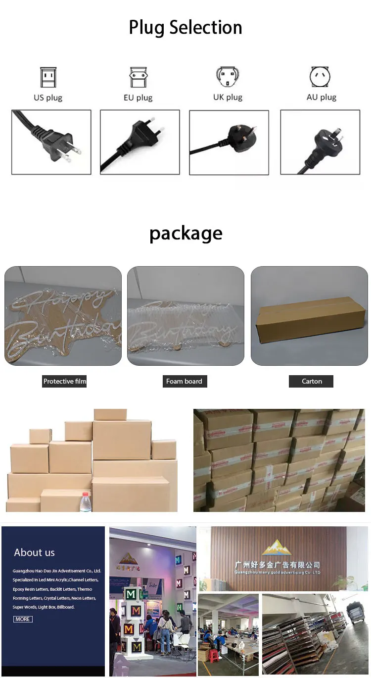 Наша светодиодная неоновая вывеска сделана из лучшего качества led neon flex, поэтому мы можем обещать, что наружная гарантия составляет 6 месяцев, гарантия в помещении составляет 1 год. В течение гарантийного срока, если возникнут какие-либо проблемы с качеством, мы отремонтируем или даже заменим для вас бесплатно.