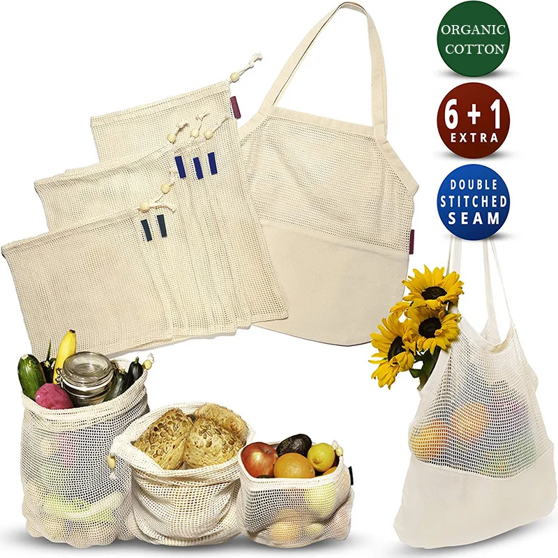 * Дайте ему дышать-Используете ли вы их как мешки для овощей, мешки для фруктов или для хранения спортивной одежды, игрушек или любых других предметов, они останутся свежими и удобными в нашей дышащей, мягкие и полностью натуральные хлопковые сетчатые сумки