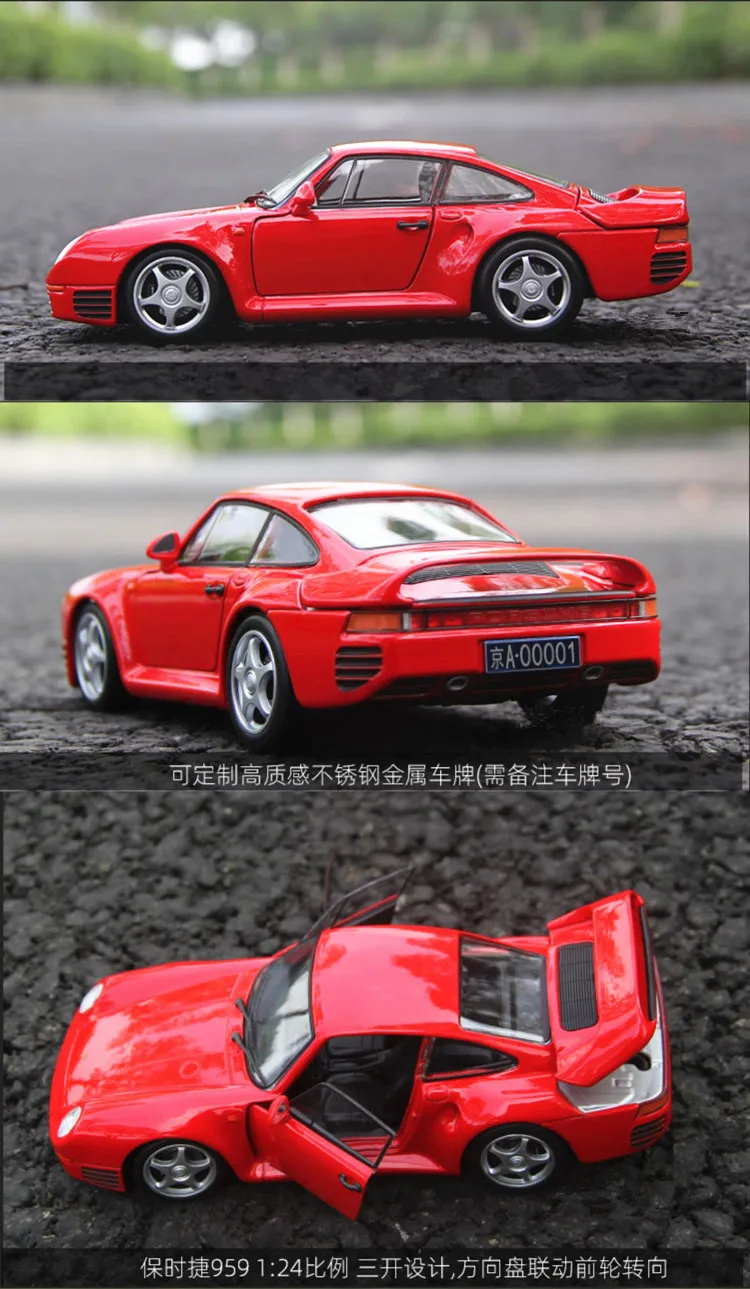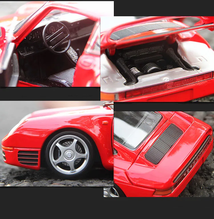 Название модели: Porsche 959Бренд модели: WEELY (Гонконг) Происхождение модели: КитайПропорция модели: 1/24 материал модели: пластик, сплав, резинаРазмер модели: 18*7,5*4,7 см. Размер цветной коробки: 24,5*12,5*10 смДанное изделие является коллекционной игрушкой, исключая электрическую. Шины можно перемещать, а руль двери можно перемещать.