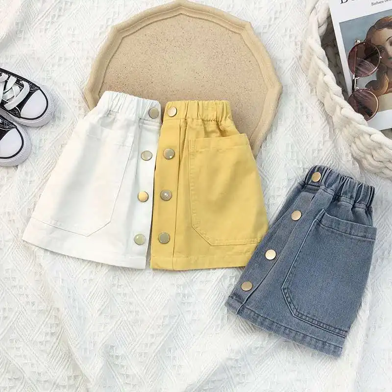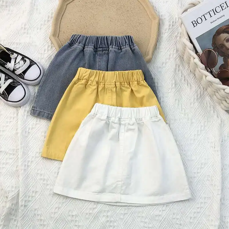 Летняя Новинка 2020 года; Джинсовая юбка для девочек; Модная детская юбка трапециевидной формы в Корейском стиле; Джинсовая юбка