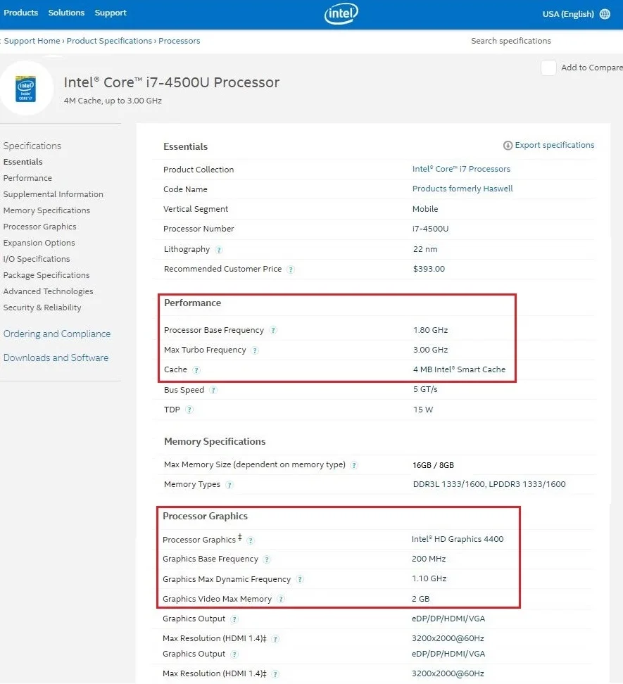 Intel Core i7 4500u процессор обеспечит вам более быструю скорость и низкое потребление, turbo boost 1,8 ГГц помочь Процессор частота Ядра добраться до 3,0 ГГц, если сумма вашего заказа превышает предыдущего поколения