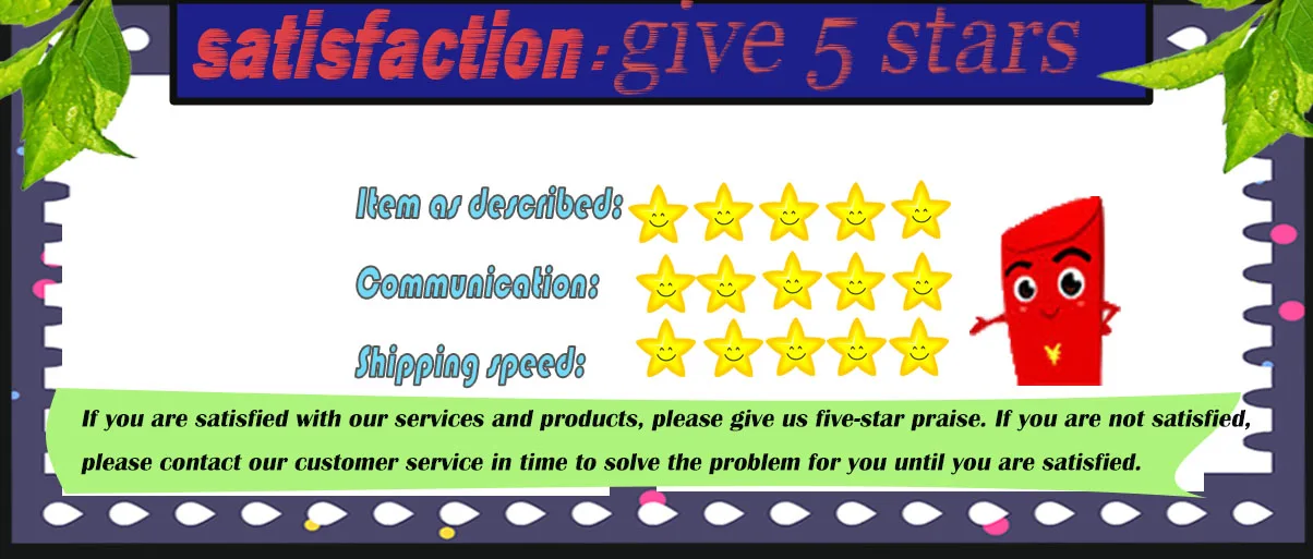 Пожалуйста, оставьте нам положительные отзывы и 5 звезд комментарии,