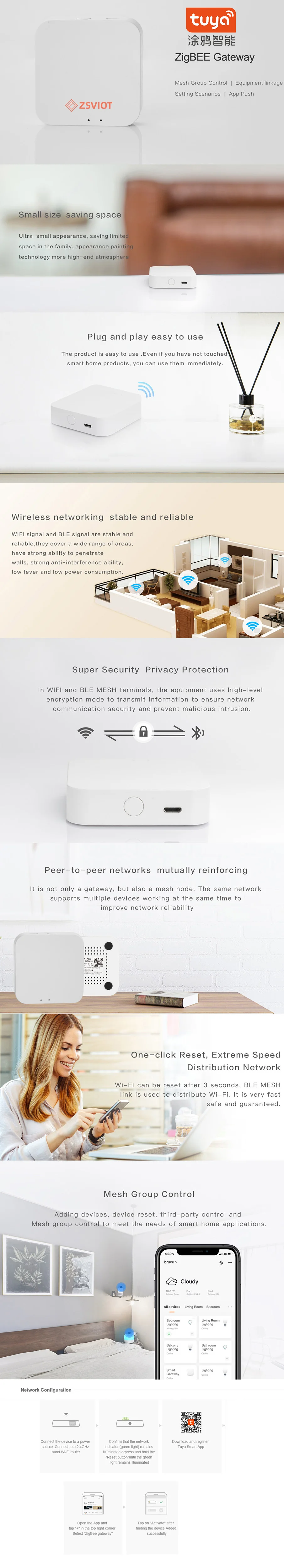 Хаб TUYA Zigbee, который подключается к различным интеллектуальным продуктам Zigbee и является мостом и центром управления для умных домов. Подключившись к роутеру, TYGWZ-01 позволяет общаться с облачным и мобильным приложением, позволяя пользователям легко просматривать и управлять различными интеллектуальными устройствами в доме, которые используют Протокол Zigbee.