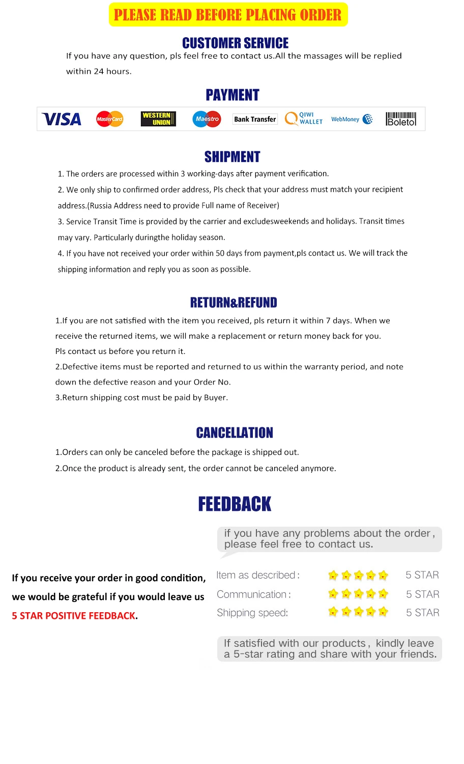 1. Это не оригинальное издание, оно сделано китайскими производителями, мы называем KO Edition 2. Различные компьютерные мониторы или мобильные телефоны должны иметь хроматическую аберрацию при просмотре одной и той же фотографии. Различные съемки устройств и различных светильник источников приведет к тому, что разница в цвете между фотографиями и объектов. Неизбежно, что в онлайн-покупках будет разница в цвете. 3. Из-за различных методов измерения возможна погрешность в 1-3 см.