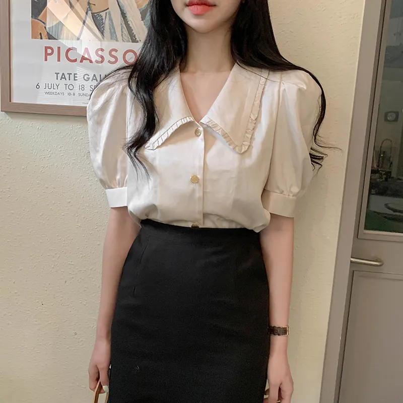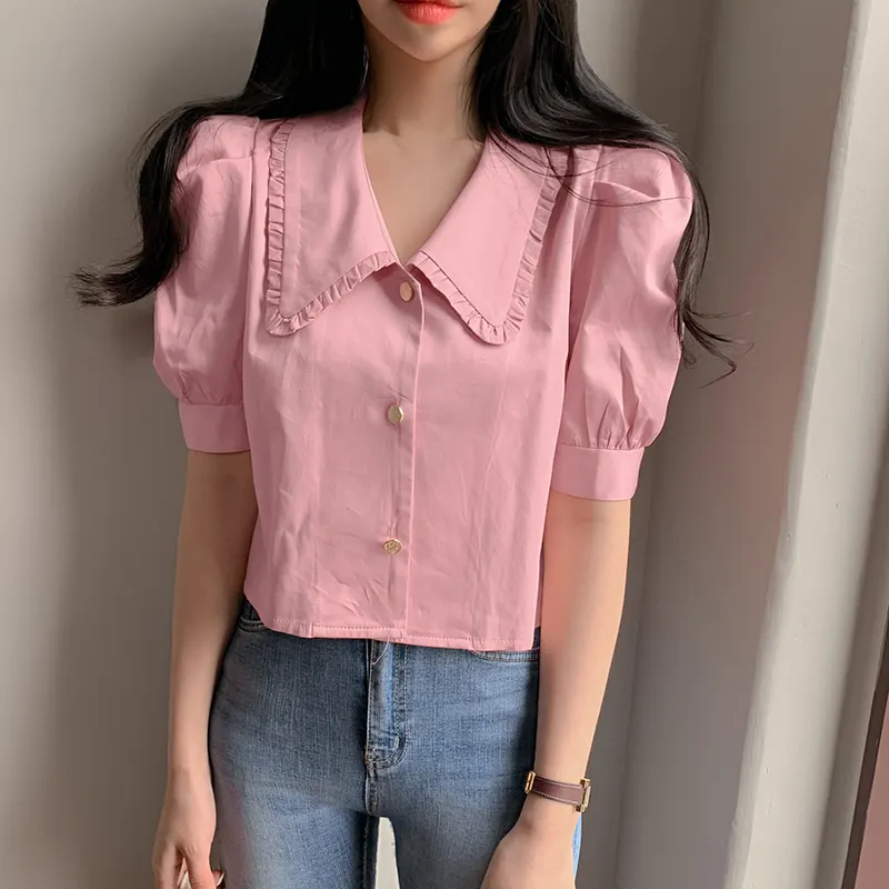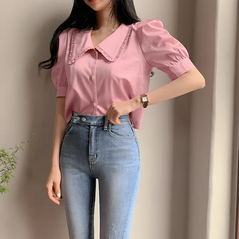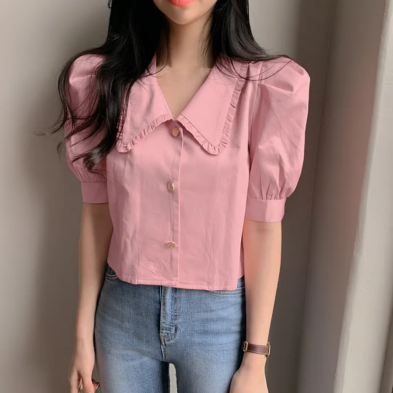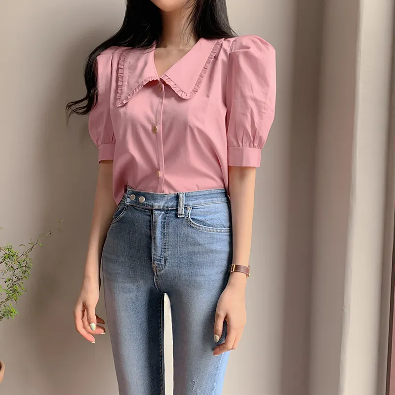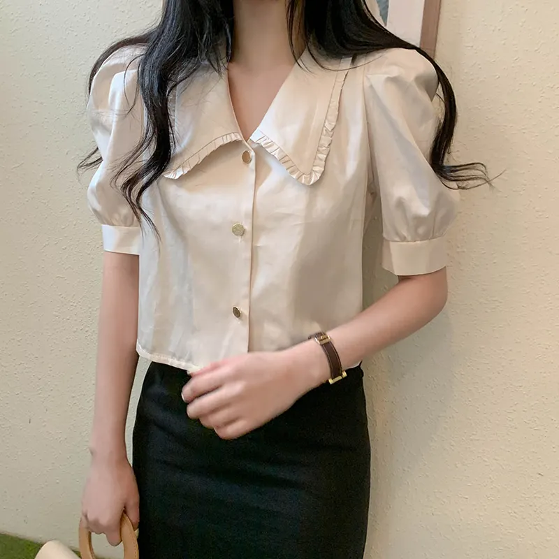 Женская винтажная однобортная блузка с длинным рукавом отложным воротником и