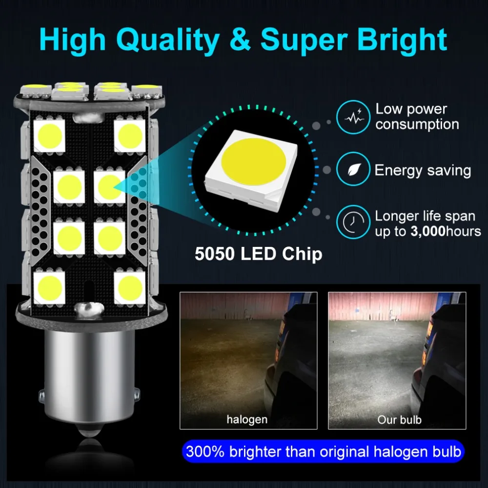 Чипы: 40SMD 5050 чипы, низкое энергопотребление, энергосбережениеСветильник: 4 стороны 360 ° светильник ingЛюмен: супер яркий 1200LMЦветовая температура: 6000K ксеноновый белыйМатериал: алюминийLfiespan: > 3000 часовЦвет: белый, красный, голубой и синийРозетка: BA15S & BAU15S & BAY15DНовый светодиодный индикатор снижает энергопотребление с 40% до 80%.Для замены сигнала, поворота, заднего хода, тормоза, парковки, хвоста, DRL и противотуманных фар и т. д.Посылка включает:1 шт. супер яркая светодиодная лампаСмотрите так же другие товары: