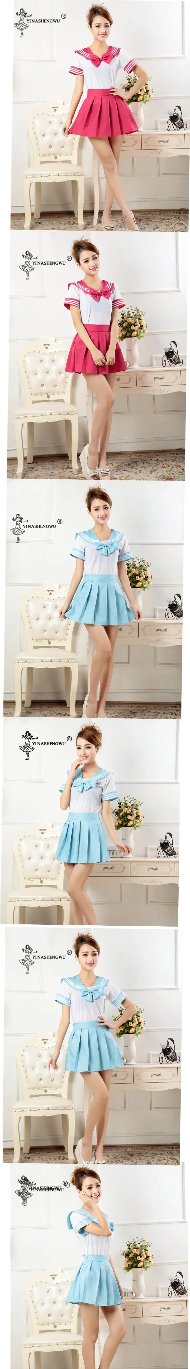 7 цветов японская школьная форма Аниме COS костюм моряка Топы + галстук + юбка JK в морском стиле Студенческая Одежда для девочек с коротким рукавом