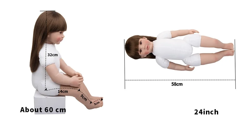 1. Размеры куклы:Наша кукла изогнута, мы измеряем кукольную ногу, как она находится в прямом состоянии, то есть длина от бедра до колена плюс длина от колена до цыпочек: поэтому существует отклонение на 2-3 см из-за различных способов измерения.