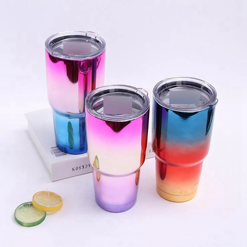 2 шт термос из нержавеющей стали с крышкой соломы 30 унций Изолированная чашка пива питьевой термос кофейные чашки-красный и фиолетовый