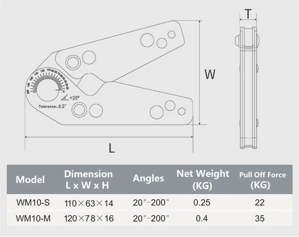 С ясным масштабом, легко оседает углы от 20-200 градусов путем удержания заготовок снаружи.