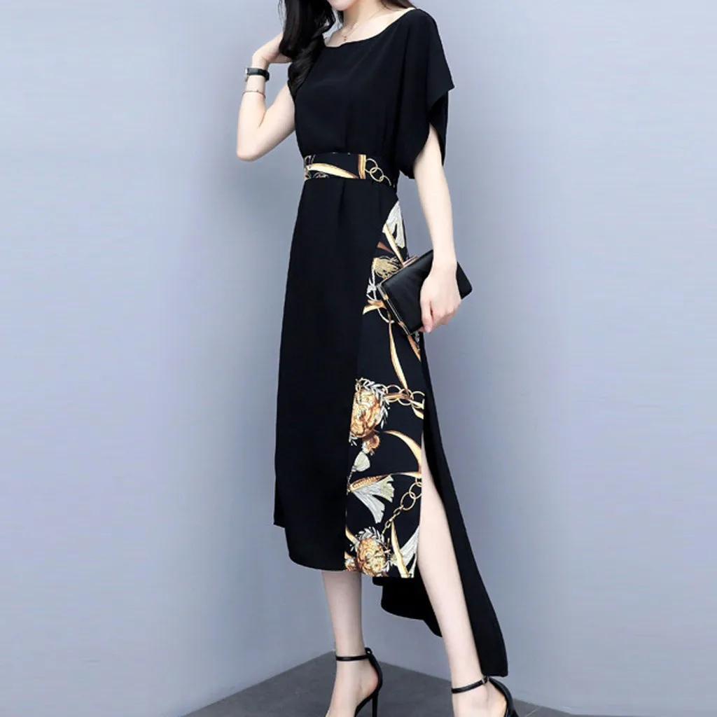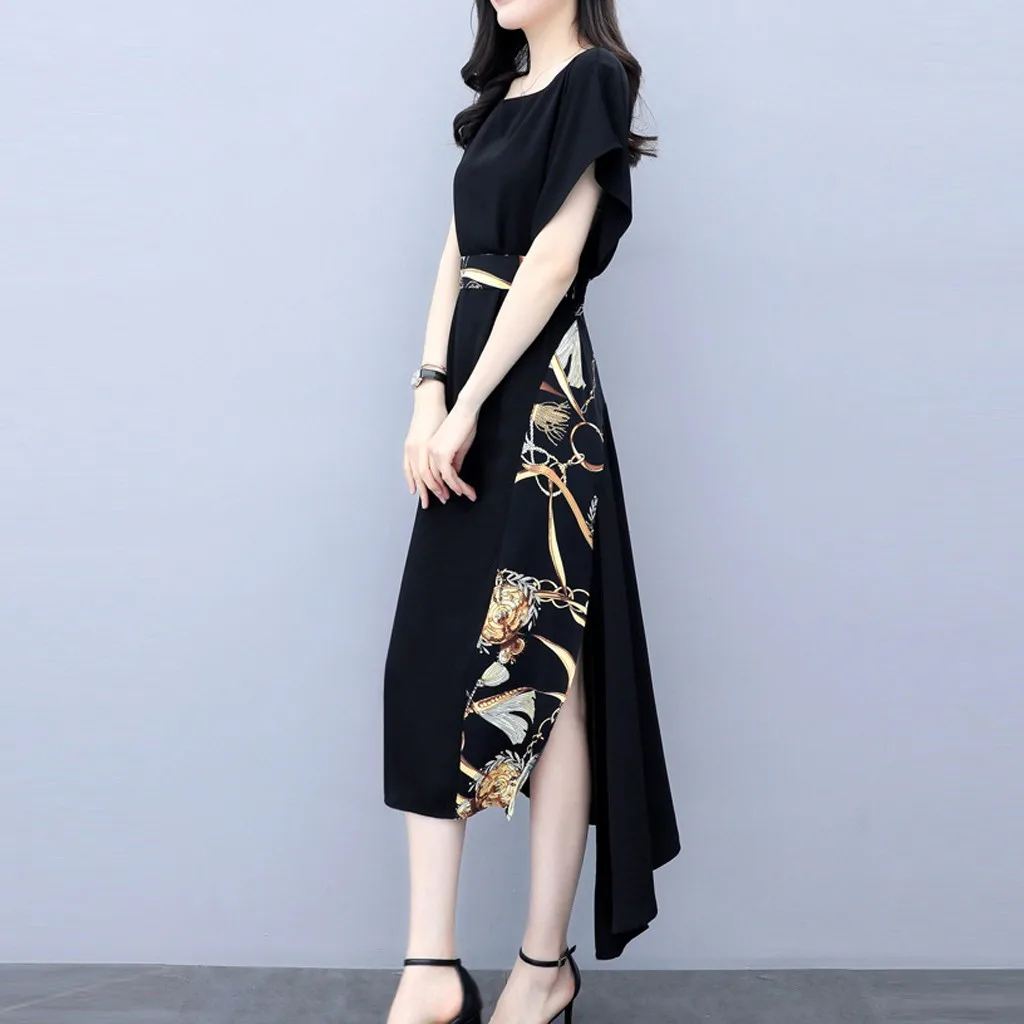 Женское модное летнее элегантное платье с круглым вырезом и коротким рукавом в стиле ретро