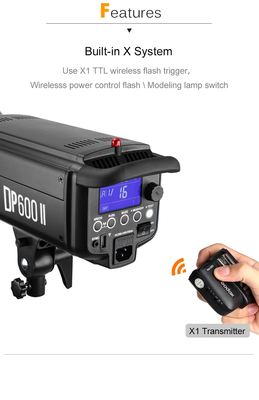 Студийный стробоскопический светильник TZT Godox DP600II GN80 Speedlite с 2,4G системой Godox X 110V US Plug