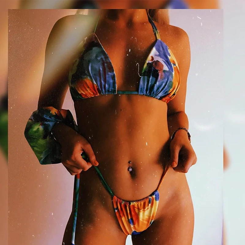 Solid Bikini Sexy Swimsuit Halter Swimwear Bathing Suit Women Bling Sequin Set Beach Wear Dropshipping Monokini Glitter | Женская одежда