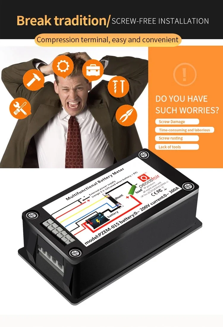 PZEM DC 0-200V 300A Вольтметр Амперметр автомобильный тестер батареи сопротивление емкости электричество
