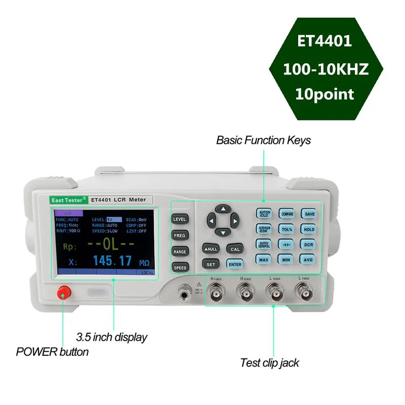 ● Частота измерения до 100 кГц ● Уровень тестирования 100 ~ 2000мв ● Поддержка измерения постоянного тока Сопротивление и электролитический конденсатор ● Выходное напряжение внутреннего смещения (1mV-1500mV) ● Автоматическая идентификация Измерение компонентов ● 3,5-дюймовый TFT дисплей, 5 с половиной бит дисплея ● USB, интерфейс связи RS232, Ручка для сортировки ● Функция записи данных (максимум и Минимальные значения, среднее значение) ● Поддержка протокола связи SCPI ● Предоставьте системные настройки, которые могут настроить Язык, зуммер, яркость экрана, И т. Д. В соответствии с потребностями пользователей. ● Базовая точность 0.2% ● Ручной и автоматический диапазон ● Быть оснащен открытой схемой и Коррекция короткого замыкания ● Компаратор имеет функцию сортировки и сигнализации ● Предоставление различных тестовых портов