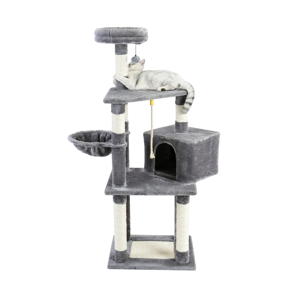 Домик для кошек с деревом, игровой центр для кошек с двойным конусом, мягкий окунь, полностью обернутый когтеточками, сизаль для кошек, игрушки, башня