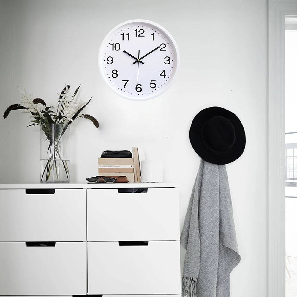 Этот продукт представляет собой пластиковые настенные часы. Большие черные смелые цифры против белого лица создают Легкий просмотр. Точные кварцевые движения гарантируют точное время. Подходит для спальни, гостиной, кабинета, офиса и детской комнаты и так далее.