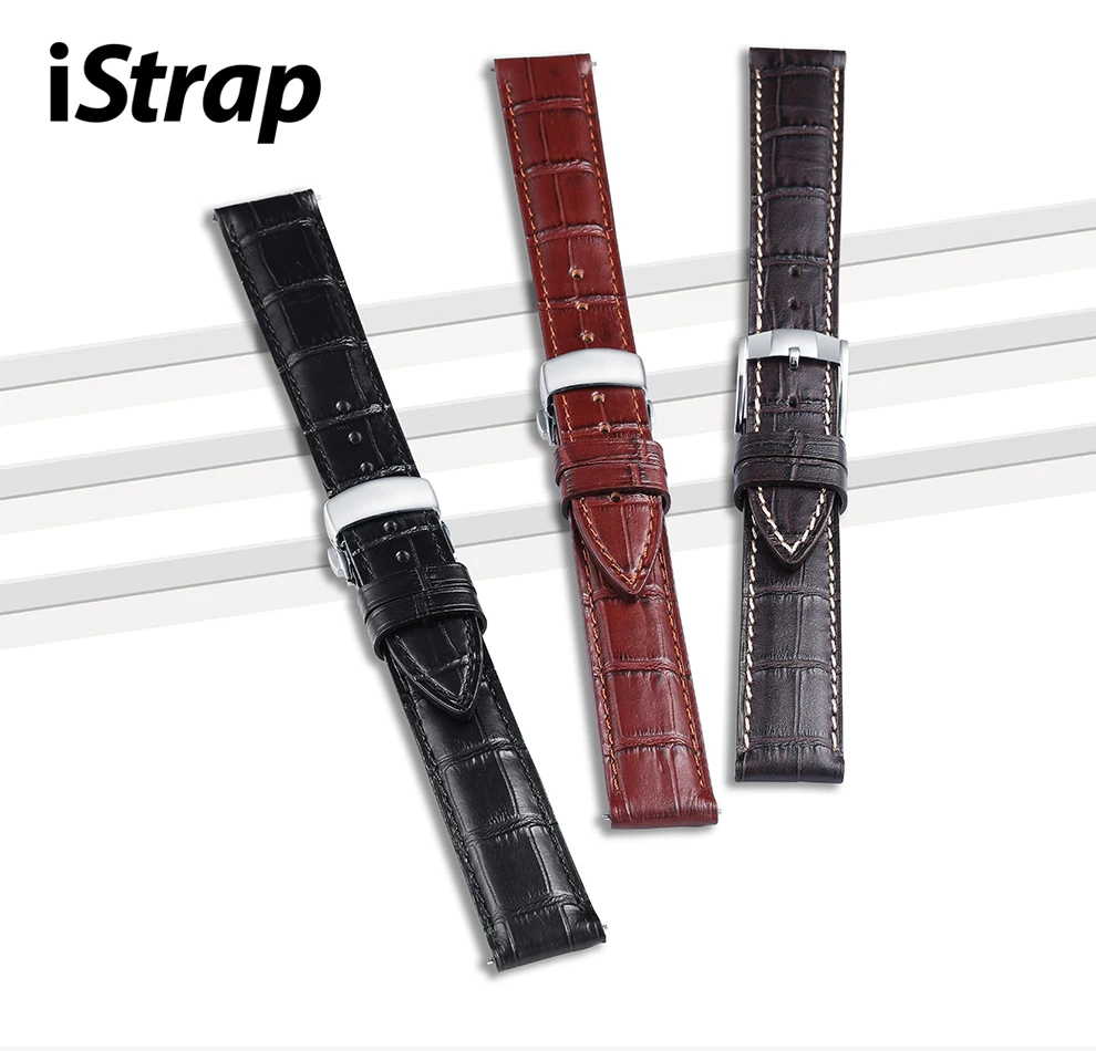 Ремешок для часов iStrap из натуральной кожи, 16 мм, 18 мм, 19 мм, 20 мм, 21 мм, 22 мм, 24 мм, быстросъемный ремешок с пряжкой-бабочкой