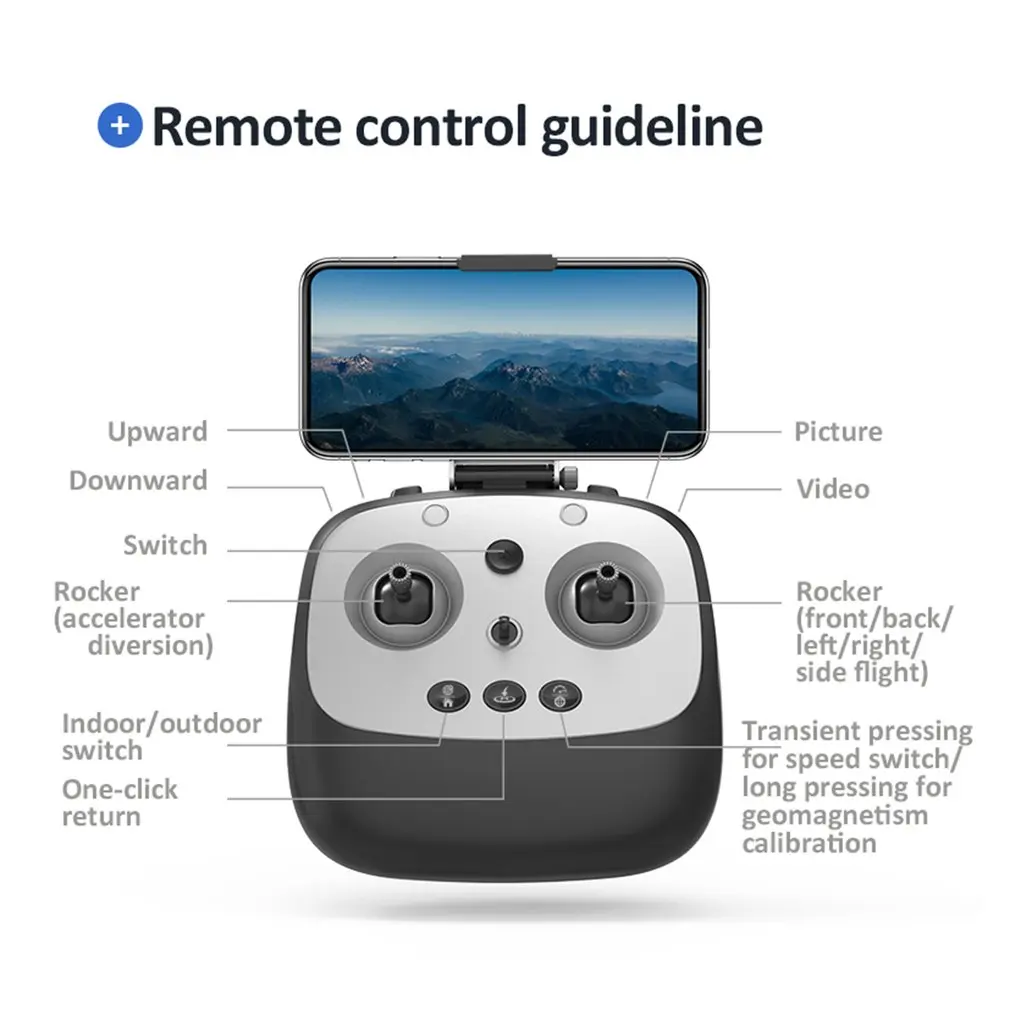 6. Используйте давление воздуха, чтобы установить отношение, контролировать мобильный телефон, мульти-скоростной полет, бесшумный полет, портативный пульт дистанционного управления, Интеллектуальная батарея, 4 стадии сопротивления ветра и т. Д.