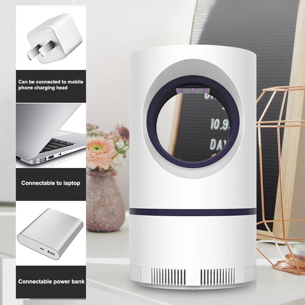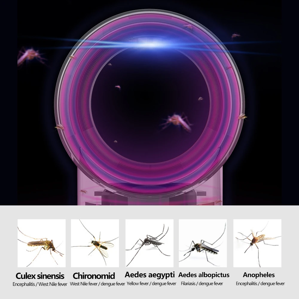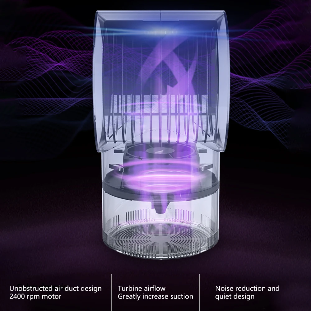 Эффективное управление от комаров: мощный вентилятор 2000 об/мин, циркуляция воздуховода без препятствий, конвекция 5 спиральных ветровых лопастей 2200rmp всасывание для формирования большого потока воздуха. Сделайте комаров обезвоженным и умершим.