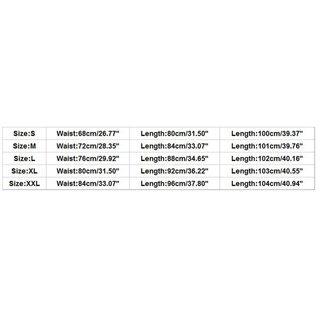 Размер: S обхват талии: 68 см/26,77 дюйма обхват бедер: 80 см/31,50 дюйма Длина: 100 см/39,37 дюйма Размер: M обхват талии: 72 см/28,35 дюйма обхват бедер: 84 см/33,07 дюйма Длина: 101 см/39,76 дюйма Размер: L обхват талии: 76 см/29,92 дюйма обхват бедер: 88 см/34,65 дюйма Длина: 102 см/40,16 дюйма Размер: XL обхват талии: 80 см/31,50 дюйма обхват бедер: 92 см/36,22 дюйма длина: 103 см/40,55 дюйма Размер: XXL обхват талии: 84 см/33,07 дюйма обхват бедер: 96 см/37,80 дюйма Длина: 104 см/40,94 дюйма