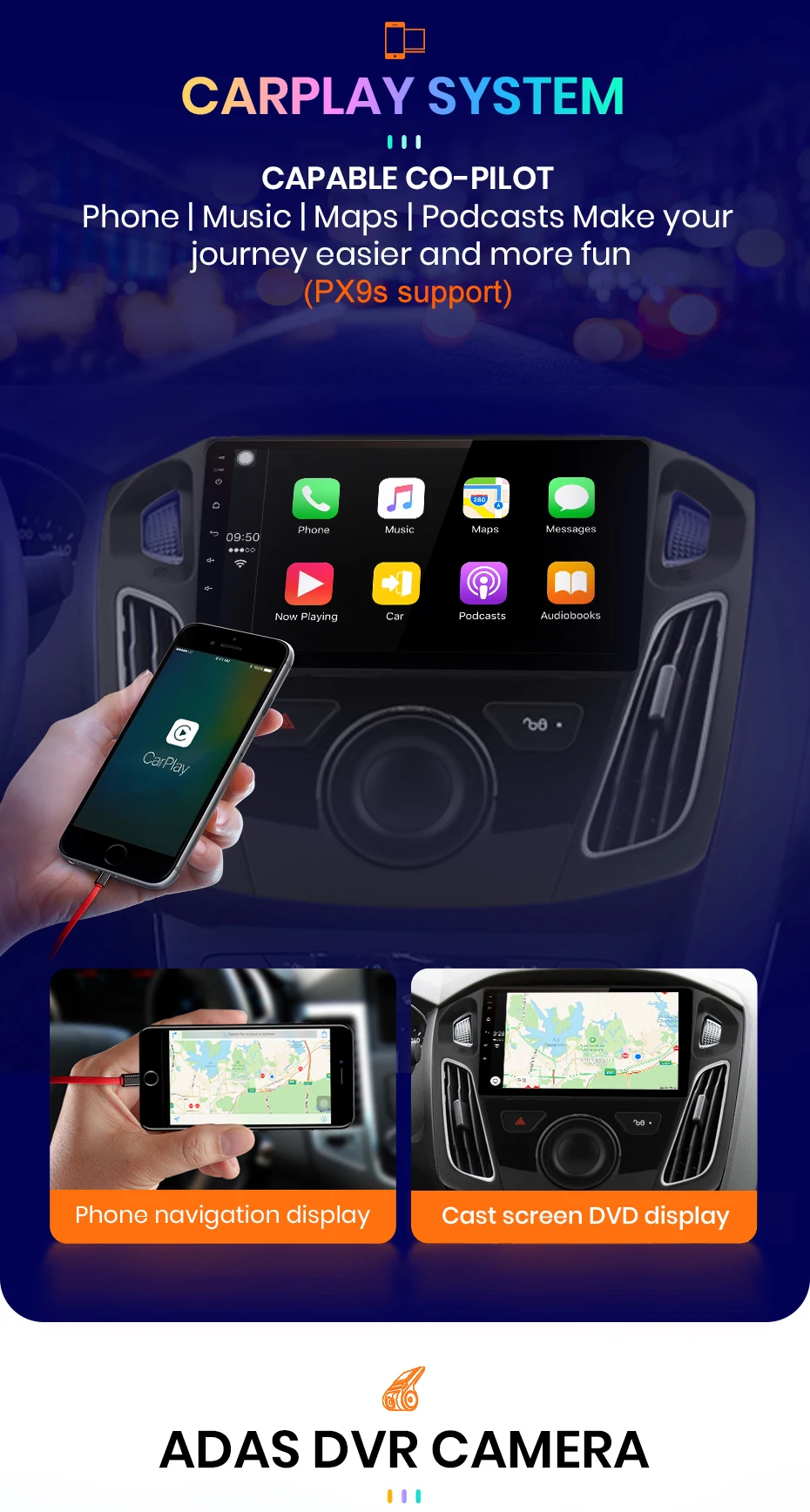 Когда автомобильное радио подключено к ADAS video recorder, это сделает передовую систему помощи при вождении, И предупредит вас, если ваш автомобиль слишком близко к переднему автомобилю или если ваш автомобиль отклоняется от полосы движения, чтобы помочь вашему вождению безопаснее и проще.