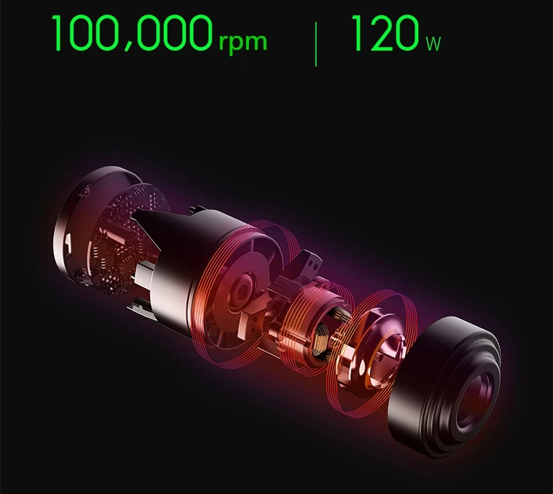 Бесщеточный цифровой двигатель A- Force Принести сильную мощность Новый бесщеточный цифровой двигатель A-Force, максимальная скорость может достигать 100000 об/мин, мощность всей машины до 120 Вт, обеспечивая сильную мощность.