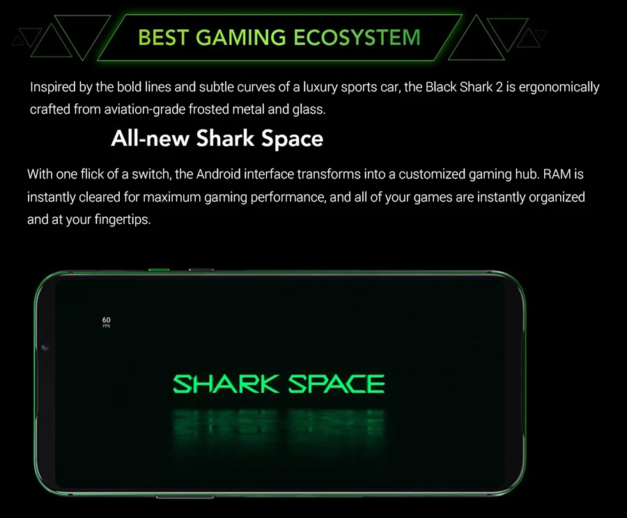 Модель Xiaomi Black Shark 2 Сеть ---------------- сеть Частотный диапазон "FDD LTE (Частотный диапазон B1,B3,B4,B5,B7,B8,B20) Международная Версия: FDD LTE (Частотный диапазон B1,B3,B4,B5,B7,B8,B20,B28)" TDD LTE (Частотный диапазон B34,B38,B39,B40,B41) TD -SCDMA (Частотный диапазон B34,B39) WCDMA (Частотный диапазон B1,B2,B5,B8) GSM (Частотный диапазон B2,B3,B5,B8) CDMA/EVDO (Частотный диапазон BC0) Размер дисплея ------------- 6,39 дюйма AMOLED 19,5: 9 полноэкранный дисплей Разрешение дисплея ---- разрешение 1080*2340 Процессор --------------------- Snapdragon™855 процессор премиум-уровня 2,84 ГГц GPU ------------------- Adreno™640 графический процессор Система ------------------ Android 9,0 (пирог), обновленная до Android 10, JoyUI 11 Задняя камера ---------- 48MP + 12MP Фронтальная камера ---------- 20 МП Емкость аккумулятора ------ 4000 мАч Распознавание ---------- отпечатков пальцев (под дисплеем, оптический) SIM -------------------- две sim-карты Хранение ----------------- 128 ГБ 6 ГБ RAM, 128 ГБ 8 ГБ RAM, 256 ГБ 12 Гб RAM