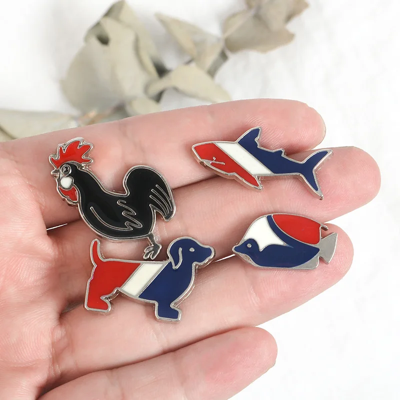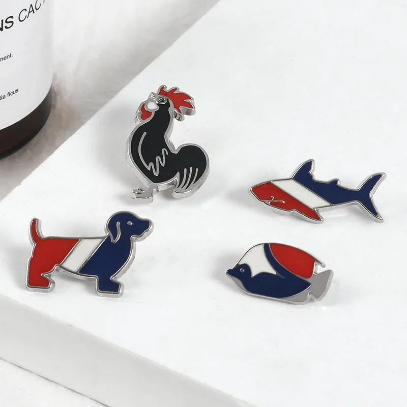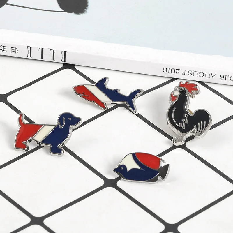 Креативные красные, синие, белые эмалевые броши в виде животных, петух, собака, Акула, футболка, на лацкан, шпильки, ковбойский рюкзак, значок на шляпу, аксессуары